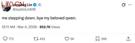 3 月 4 日(周三)凌晨,阿里 Qwen 团队技术负责人林俊旸突然在社交媒体发布状态:“me stepping down. bye my beloved qwen.”(我辞职了,再见了我爱的 qwen)。