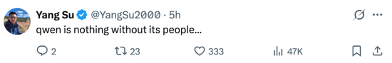 后来我们证实,前一天 3 月 3 日下午,林俊旸已正式向阿里提出辞职;稍晚,Qwen 团队小范围同步了这一消息。接近此事的人士说,有 Qwen 同事得知他将离职的消息后难掩情绪,“伤心地哭了”。