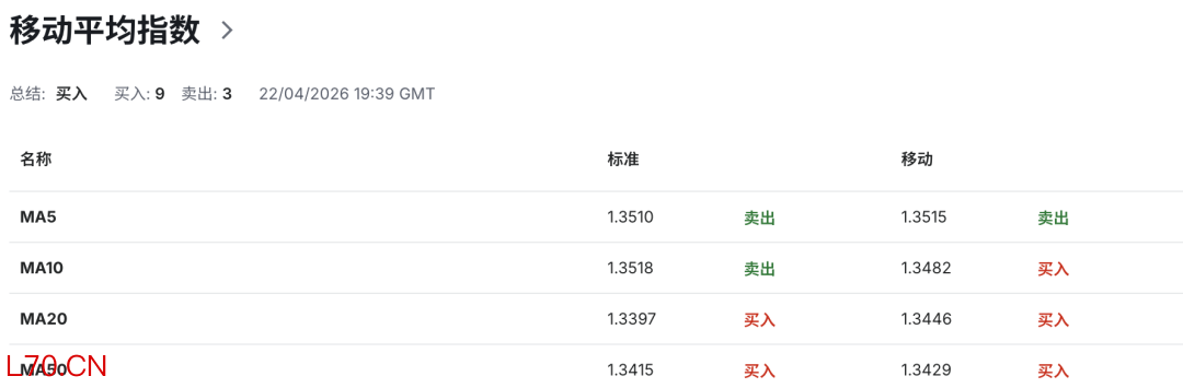 总体而言,英镑兑美元在4小时级别上处于技术性回落调整阶段,布林带收口与RSI中性偏弱读数共同指向市场缺乏明确的趋势方向。短期内汇价大概率围绕1.3470-1.3550区域进行低位拉锯,后续方向选择仍需等待基本面信号——尤其是中东局势对美元避险情绪的驱动——来打破当前的整理格局。