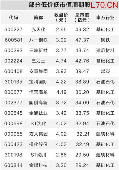 强周期板块行情持续升温 部分低价低市值周期股一览